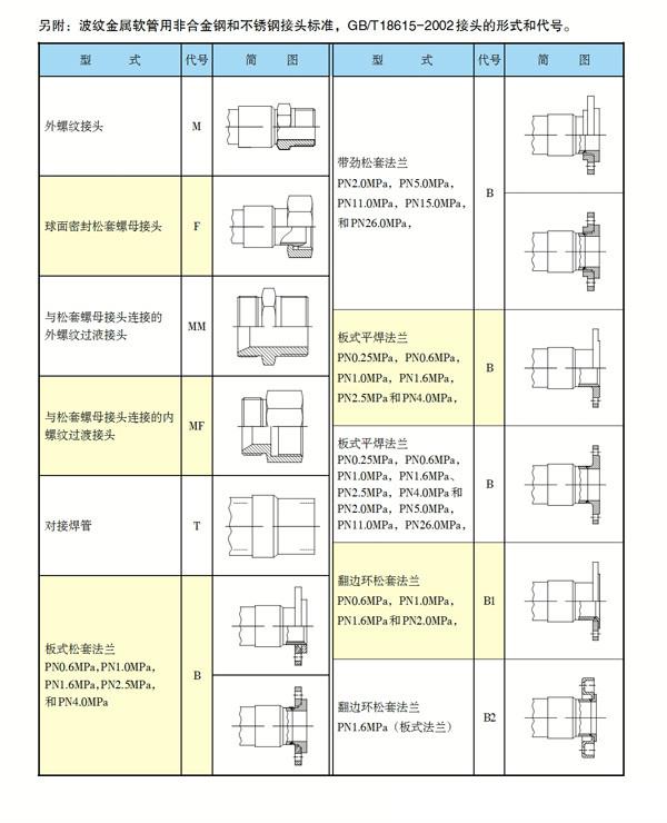 波纹金属软管标准接头型式和代号